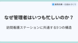 業務が仕組み化されていないと、人が減る → 混乱 → 管理者がカバー → 管理者疲弊 → さらに崩れる、という負の連鎖に入りやすくなります。